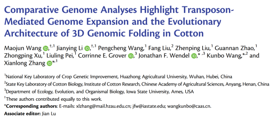 本次研究首次公布了棉屬中二倍體圓葉棉基因組,并對(duì)亞洲棉和雷蒙德氏棉基因組進(jìn)行了升級(jí),解析了轉(zhuǎn)座子活動(dòng)驅(qū)動(dòng)的基因組大小進(jìn)化特征,從轉(zhuǎn)座子擴(kuò)增和染色質(zhì)空間結(jié)構(gòu)角度為棉花物種進(jìn)化提供新的見解,為植物中轉(zhuǎn)座子活動(dòng)介導(dǎo)的轉(zhuǎn)錄調(diào)控進(jìn)化研究提供參考。