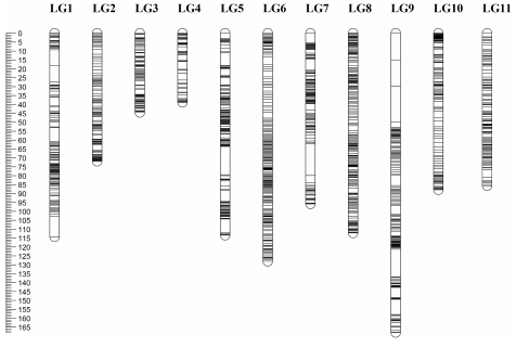 圖1 綠豆高密度遺傳圖
