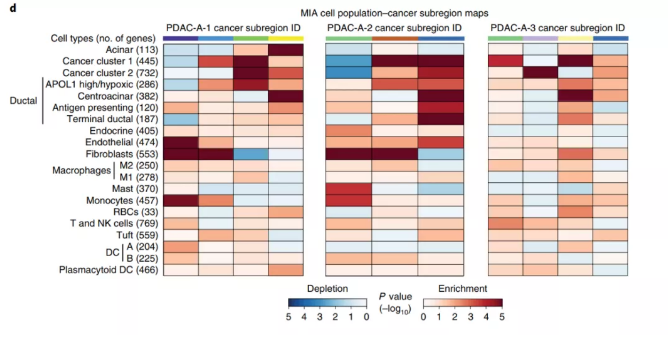 注:熱圖行表示個細胞類型,列為空間組織區(qū)域,紅色表示富集,藍色表示缺失