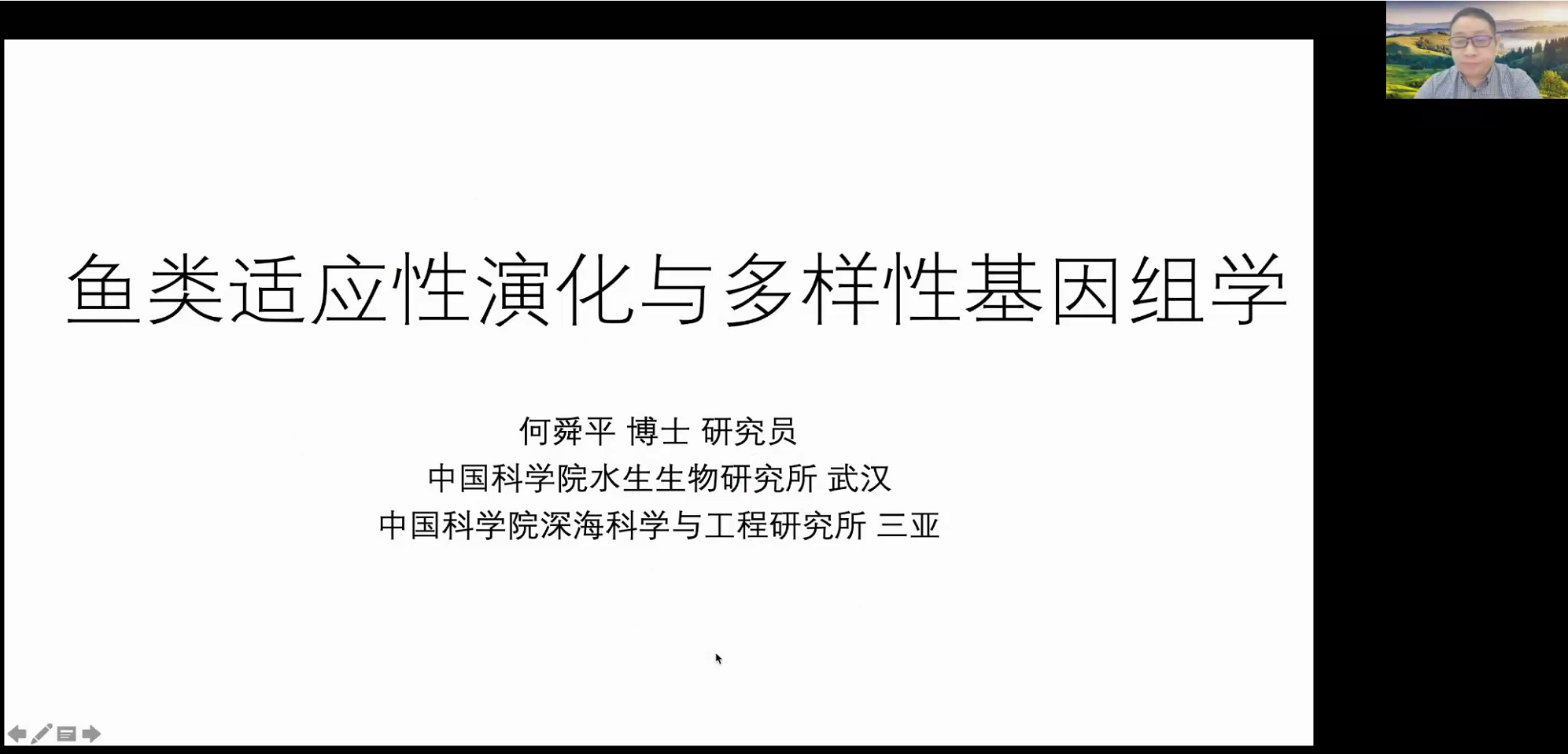 中國科學院水生生物研究所何舜平研究員充分的介紹了魚類適應性演化相關研究。研究團隊基于輻鰭魚類與四足類進化年齡、選擇壓力、表達模式以及相關的基因功能的比較分析,探討了它們對脊椎動物“登陸”事件以及矛尾魚進化的意義。揭示了早在脊椎動物祖先首次登陸之前,許多對脊椎動物登陸至關重要的肺、心臟和運動功能的遺傳調(diào)控網(wǎng)絡就已存在。進一步通過演變中重要地位的肺魚基因組解析了其肺表面活性劑關鍵基因、手指形成關鍵元件保守元件、抗抑郁相關關鍵基因。最后何老師基于萬種魚基因計劃也為我們展示了鯉科魚類適應進化的科研成果。