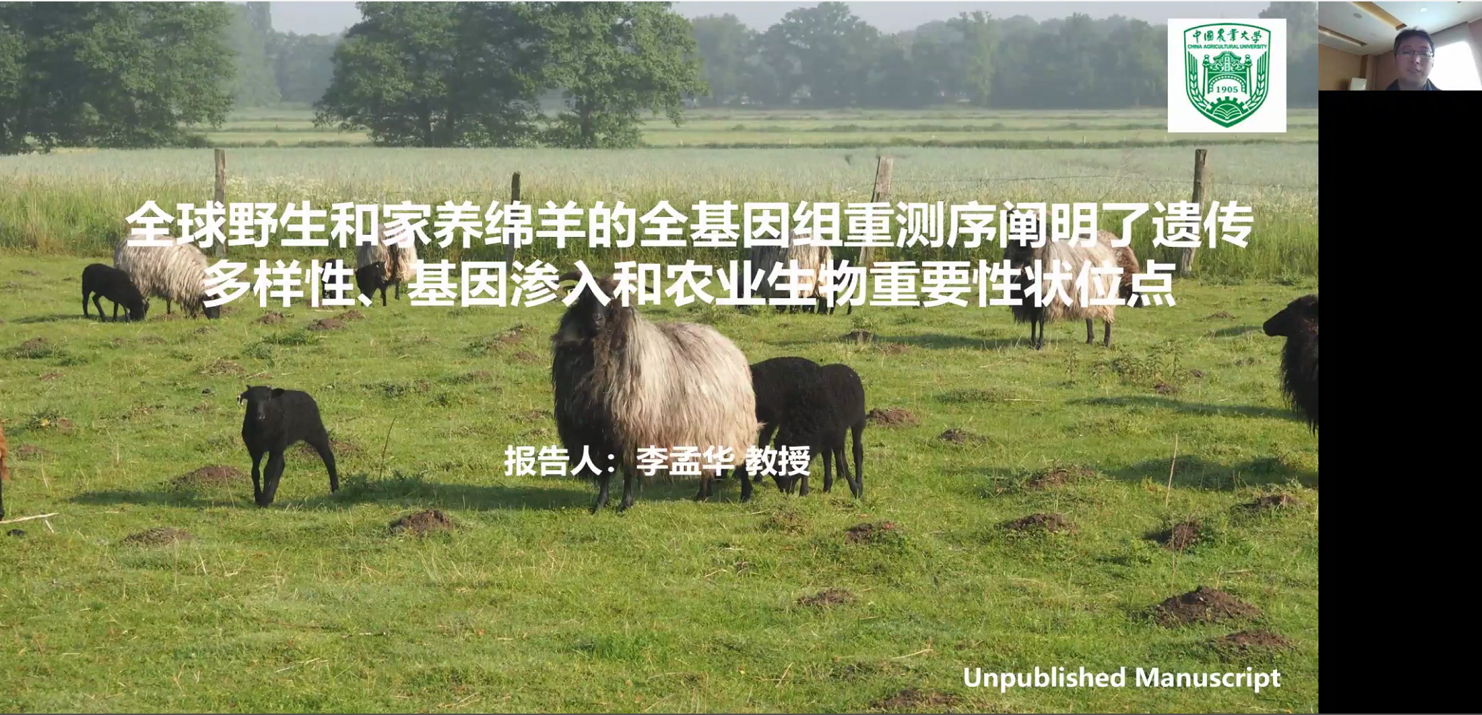西北農(nóng)林科技大學姜雨教授報告詳述了基因滲入對羊基因組的塑造及其功能改變,其研究團隊通過代表了170多個世界綿羊品種和七個綿羊?qū)僖吧锓N的全基因組序列分析,發(fā)現(xiàn)平均每只家養(yǎng)綿羊的基因組序列分別來自于伊朗的野生摩佛倫羊、東方盤羊和東亞盤羊的雜交滲入。說明起源于野生物種并滲入家養(yǎng)綿羊的獨特單倍型在表型多樣性和綿羊本地化適應中起著重要作用。并發(fā)現(xiàn)綿羊的大角、小角、無角以及耳朵大小性狀相關基因。最后表示,從多個近緣野生物種、馴化祖先種的不同群體之間發(fā)生的滲入事件持續(xù)發(fā)生,遠比想象的復雜,需要結(jié)合歷史和地理的遷徙知識討論。滲入單倍型在多種功能上發(fā)揮作用,其與已存在變異、新發(fā)突變通過快速組合,適應新的環(huán)境。