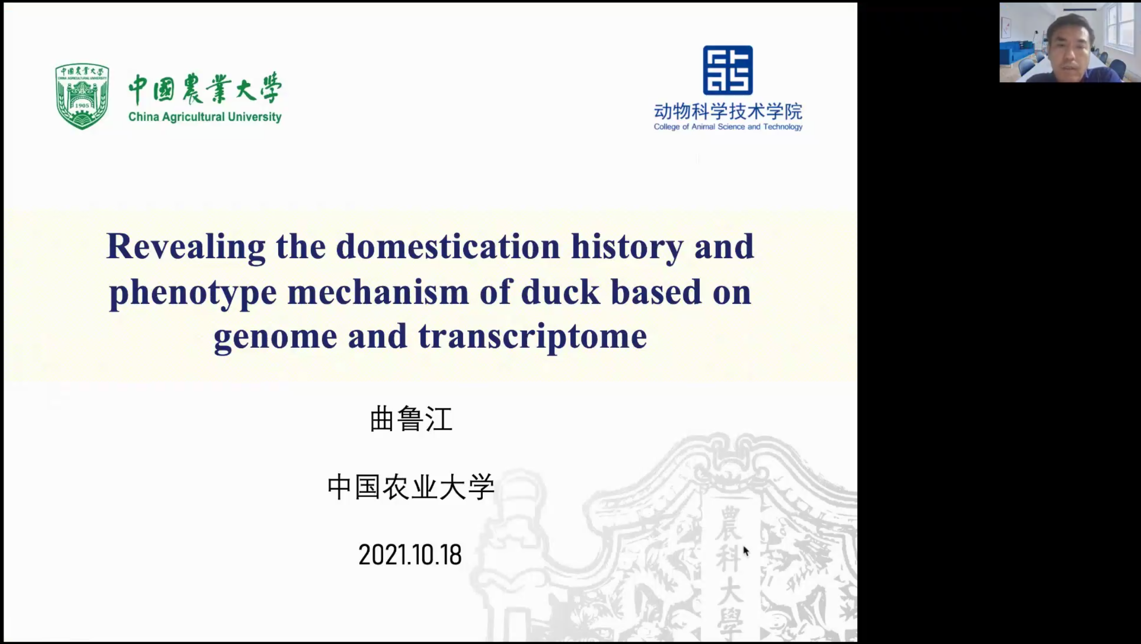 中國農(nóng)業(yè)大學曲魯江教授詳述了鴨的馴化歷史和表型機制,研究團隊利用野生群體綠頭鴨和廣泛的家鴨遺傳資源,揭示了家鴨的馴化時間發(fā)生在距今 2200年前,發(fā)現(xiàn)與大腦、神經(jīng)發(fā)育以及脂質(zhì)代謝相關的基因在馴化過程中經(jīng)歷了高強度的選擇。并尋找到鴨白羽性狀的原因突變位點以及潛在的與肉質(zhì)、視覺、飛行等表型相關的候選基因、蛋肉鴨之間的差異基因,這些差異基因與免疫和繁殖性狀有緊密的關聯(lián)。根據(jù)表達數(shù)據(jù)識別的性別偏向表達基因在馴化過程中具有獨特的進化特性,可能對應著馴化過程中性選擇和遺傳約束的動態(tài)變化。