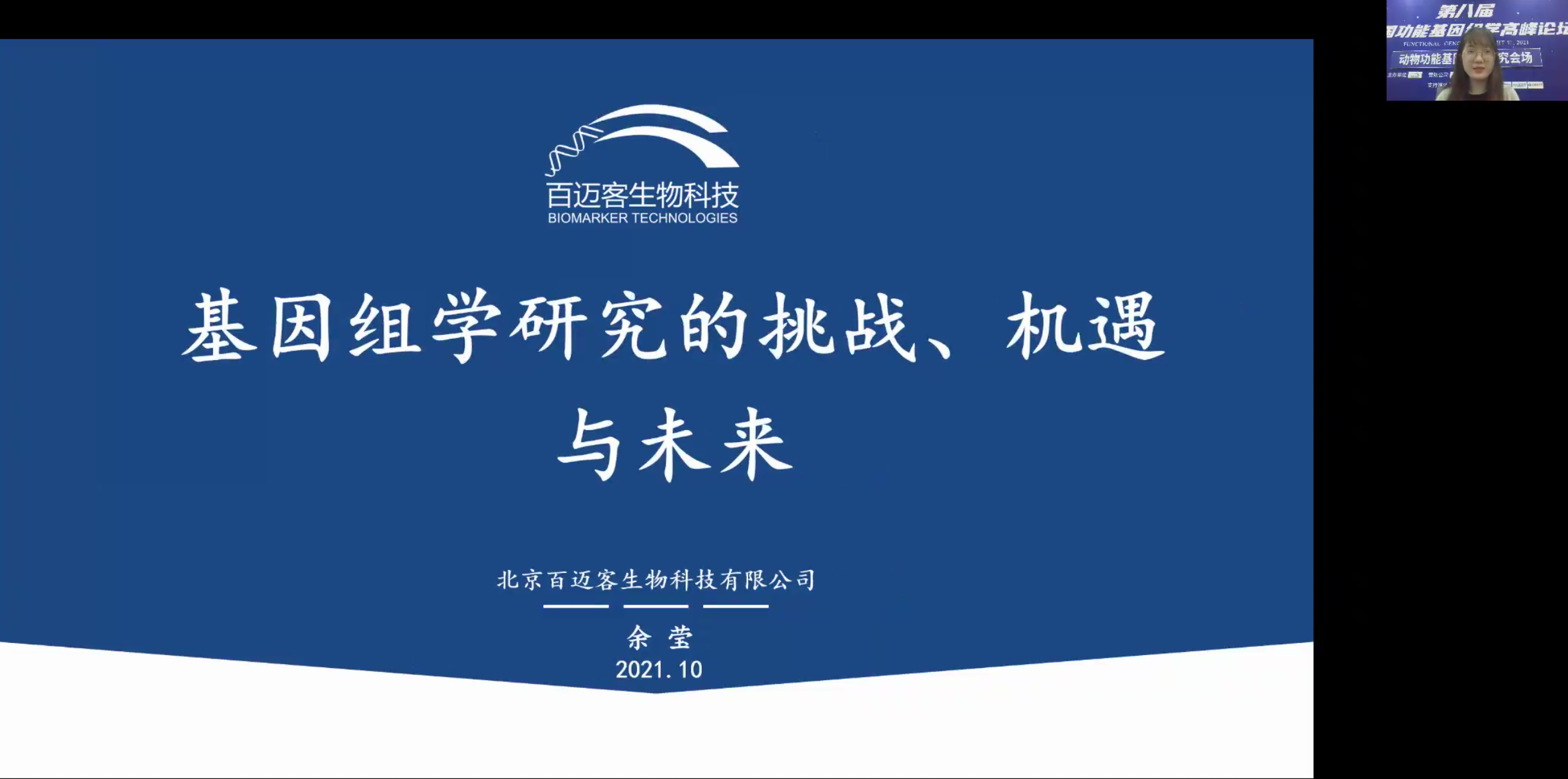 2021年10月18日,由北京百邁客生物科技有限公司主辦的“第八屆全國功能基因組學高峰論壇-動物分會場”線上直播會議完美落幕。