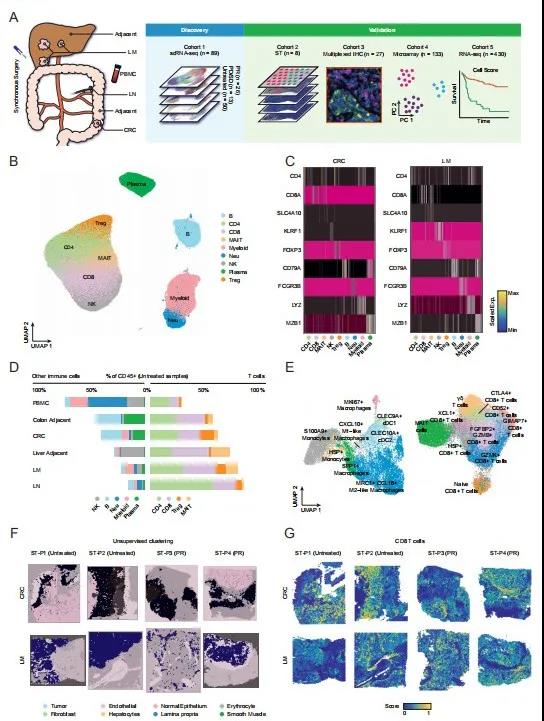 1、單細(xì)胞和空間轉(zhuǎn)錄組學(xué)繪制可切除CRLM中的免疫細(xì)胞多樣性