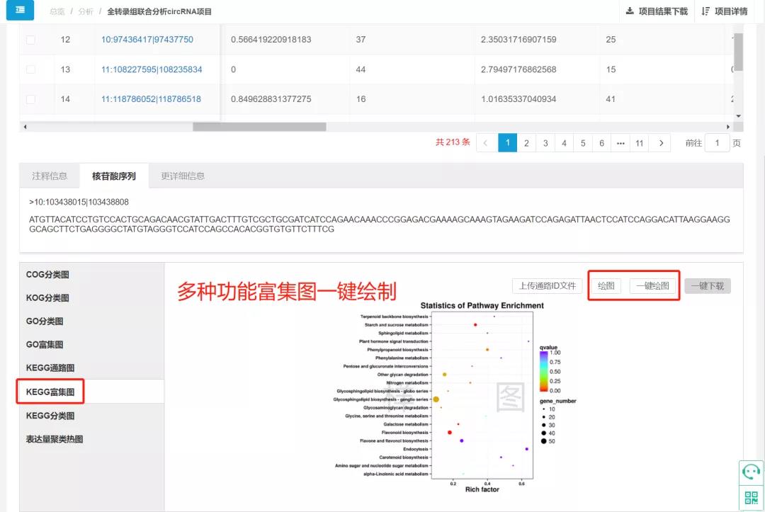 百邁客生物作為國內(nèi)轉(zhuǎn)錄組學(xué)研究的先行者,不僅對(duì)于線性RNA的研究經(jīng)驗(yàn)豐富,在非編碼RNA的研究方向上也身經(jīng)百戰(zhàn),涉及覆蓋動(dòng)物、植物、真菌等近百個(gè)物種類型,為了方便客戶的數(shù)據(jù)挖掘,同時(shí)也配備了專業(yè)完善的分析平臺(tái),今天就要向各位宣布一個(gè)好消息,CircRNA的個(gè)性化上線啦!