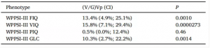 圖2和3表明腸桿菌科的一個(gè)屬(未知屬)的相對(duì)豐度與較低的WPPSI-III FIQ顯著相關(guān)。這個(gè)屬也和WPPSI-III VIQ,PIQ和GLC的低水平得分相關(guān)(圖2 A-D)。后續(xù)分析同時(shí)揭示了另外一個(gè)屬-韋榮球菌科優(yōu)桿菌屬,與WPPSI-III VIQ得分相關(guān)。