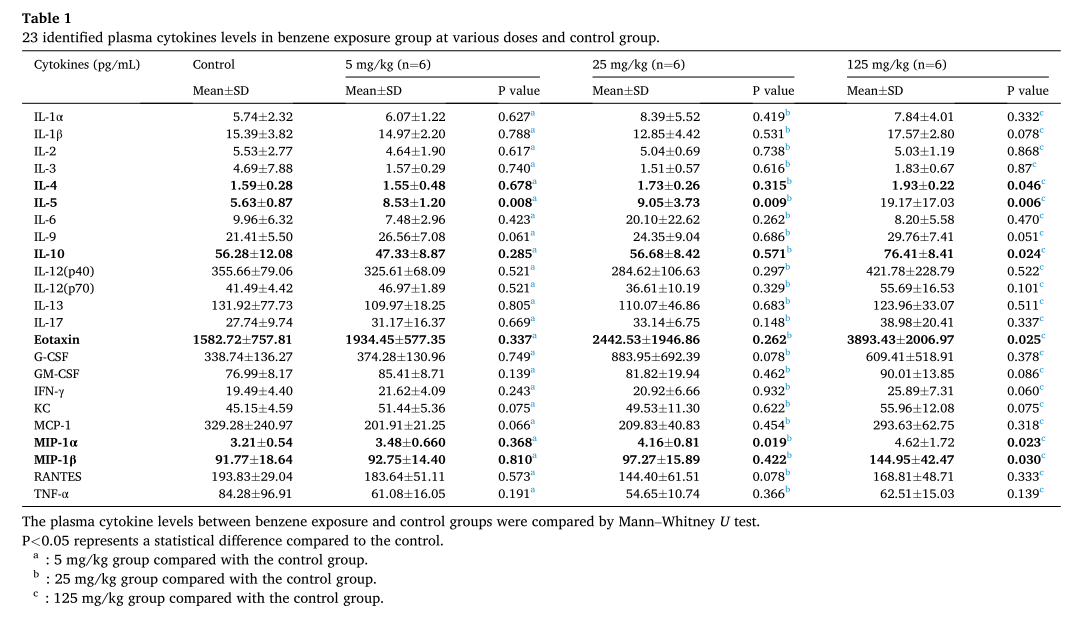 5. 苯暴露對(duì)血漿細(xì)胞因子的影響