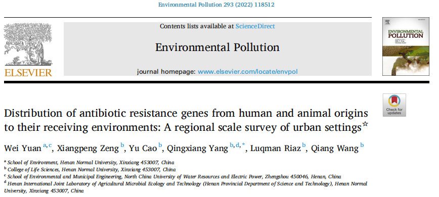 2.Yuan W, Zeng X, Cao Y, et al. Distribution of antibiotic resistance genes from human and animal origins to their receiving environments: A regional scale survey of urban settings[J]. Environmental Pollution, 2021: 118512.