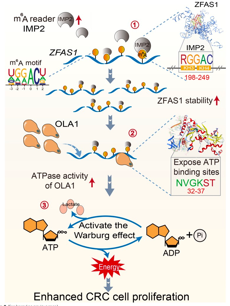 Lu S, Han L, Hu X, et al. N6-methyladenosine reader IMP2 stabilizes the ZFAS1/OLA1 axis and activates the Warburg effect: implication in colorectal cancer. J Hematol Oncol. 2021;14(1):188. Published 2021 Nov 7. doi:10.1186/s13045-021-01204-0