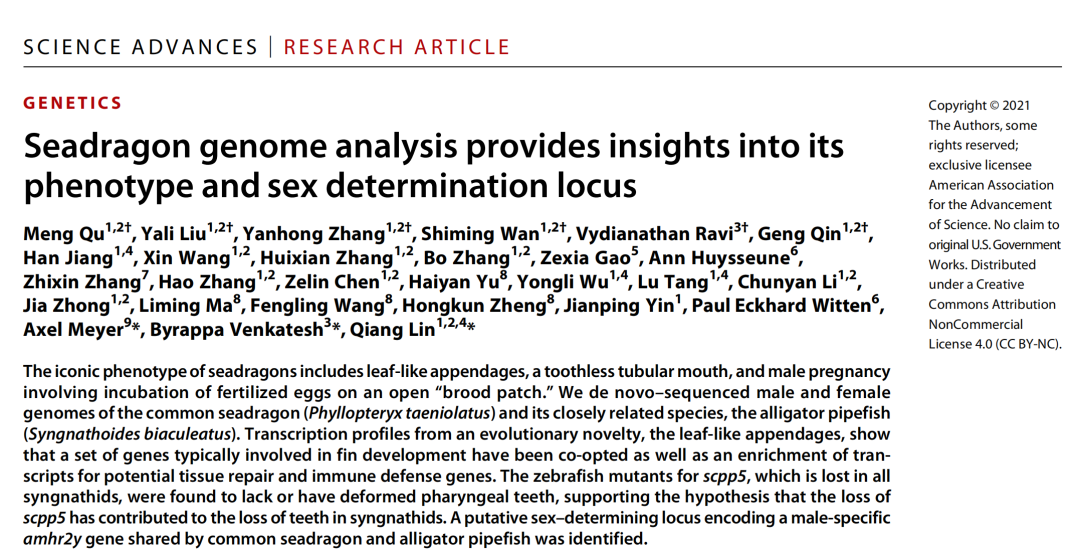 而該項(xiàng)技術(shù)也已在多項(xiàng)合作案例中成功引用,如2021年中國(guó)科學(xué)院昆明植物研究所關(guān)于無刺光葉薔薇(月季)基因組學(xué)研究成果發(fā)表在國(guó)際期刊National?Science?Review(IF:17.275),探究了月季皮刺遺傳調(diào)控機(jī)制,為更好理解植物新性狀產(chǎn)生與維持機(jī)制提供了新視角;如2021年中國(guó)科學(xué)院南海海洋研究所關(guān)于草海龍基因組學(xué)研究成果發(fā)表在國(guó)際期刊Science?Advances(IF:14.136),揭示了海龍科物種性別決定基因的產(chǎn)生和演化歷程,為海洋魚類的環(huán)境適應(yīng)性進(jìn)化研究提供了重要理論依據(jù)。