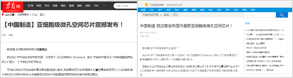 百邁客生物此次發(fā)布的空間芯片百創(chuàng)S1000,突破國(guó)外技術(shù)壟斷開(kāi)啟了國(guó)產(chǎn)化制造時(shí)代,未來(lái)百邁客將帶著百創(chuàng)系列產(chǎn)品,結(jié)合多組學(xué)技術(shù),與廣大科研工作者攜手共進(jìn),為國(guó)家科研事業(yè)創(chuàng)造新的繁榮。