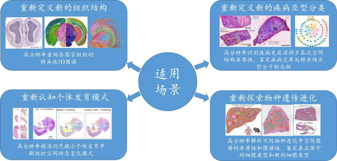 高分辨率價(jià)值在于可在微小組織、腫瘤組織、細(xì)胞類型亞型分析、識(shí)別未知細(xì)胞等方面發(fā)揮得天獨(dú)厚的優(yōu)勢(shì),百創(chuàng)S1000 亞細(xì)胞分辨率可以適用不同個(gè)體、組織、發(fā)育時(shí)期,適用現(xiàn)階段任何組織空間分析信息的獲取,正式開啟間轉(zhuǎn)錄組測(cè)序亞細(xì)胞時(shí)代。