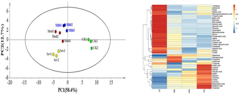 1、油斑病對初級代謝物組成的影響