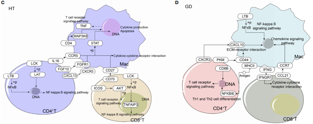 6、HT和GD微環(huán)境中T細胞和巨噬細胞的調(diào)控網(wǎng)絡分析