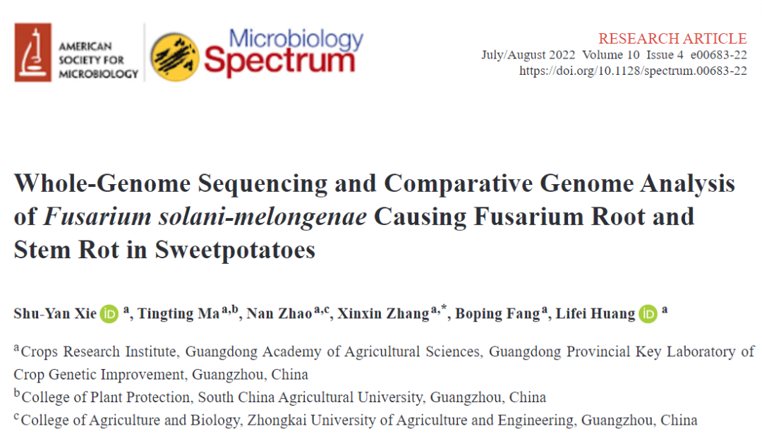 近日, Microbiology Spectrum(IF 9.0431)在線發(fā)表了廣東省農(nóng)科院作物所黃立飛副研究員、房伯平研究員為通訊作者的研究論文 “Whole-Genome Sequencing and Comparative Genome Analysis of?Fusarium solani-melongenae?Causing Fusarium Root and Stem Rot in Sweetpotatoes”,該研究報(bào)道了F. solani-melongenae?分離株 CRI 24-3 的全基因組組裝序列,并且深入探討其功能基因信息,為其他密切相關(guān)的鐮刀菌屬物種的基因組研究提供基礎(chǔ),通過比較基因組分析促進(jìn)了對鐮刀菌基因組特征和進(jìn)化關(guān)系的整體理解。百邁客有幸參與此項(xiàng)研究工作,對該真菌全基因組進(jìn)行測序組裝注釋和比較基因組分析。