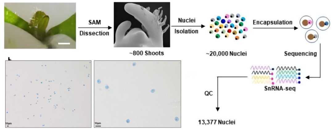 圖1 番茄莖尖核提取流程及核形態(tài)展示(Tian C et al. 2020)