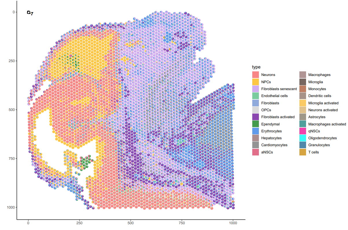 spatialDWLS首先使用細(xì)胞類型富集分析方法來(lái)確定哪些類型的細(xì)胞在每個(gè)位置具有較高的概率,然后使用阻尼加權(quán)最小二乘法(DWLS)的擴(kuò)展來(lái)確定指定位置的細(xì)胞類型的組成。與現(xiàn)有的去卷積方法相比,關(guān)鍵區(qū)別在于SpatialDWLS包含額外的過(guò)濾步驟,以去除不相關(guān)的細(xì)胞類型,從而增強(qiáng)特異性。