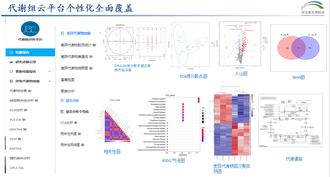 百邁客云平臺(tái)依托于多年項(xiàng)目分析經(jīng)驗(yàn),優(yōu)化云服務(wù)體系,功能全面升級(jí),搭建了覆蓋數(shù)據(jù)處理、圖片美化、結(jié)果解讀、應(yīng)用介紹的個(gè)性化分析平臺(tái),不需要和公司反反復(fù)復(fù)的確認(rèn),也不需要幾周的長(zhǎng)時(shí)間等待,通過網(wǎng)頁(yè)就可以自主完成轉(zhuǎn)錄組代謝組聯(lián)合分析數(shù)據(jù)的挖掘,把時(shí)間握在自己手中。個(gè)性化分析功能+圖片交互,所有需求一網(wǎng)打盡!5分鐘急速周期,分析結(jié)果觸手可得!更有多種聯(lián)合分析等你來拿,轉(zhuǎn)錄,蛋白,代謝,微生物任意搭配,兩兩,三三多種組合任你選!幾步操作輕松搞定,無限次免費(fèi)分析!