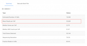 (2)細胞相關(guān)統(tǒng)計:新增細胞平均reads數(shù)(Mean?Reads per Cell)