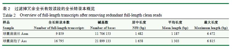 球囊菌菌株由福建農林大學動物科學學院(蜂學學院)蜜蜂保護實驗室分離、純化和保存。純化得到的純凈菌絲樣品和孢子樣品經液氮速凍后迅速轉移到-80℃超低溫冰箱保存?zhèn)溆?。利用納米孔長讀段測序技術對球囊菌的純化菌絲(Aam)和純化孢子(Aas)分別進行測序,將高質量的三代測序數(shù)據混合后用于構建全長轉錄組,并通過比對主流數(shù)據庫進行功能注釋,同時對球囊菌的長鏈非編碼RNA(longnon-codingRNA,lncRNA)進行鑒定和分析。