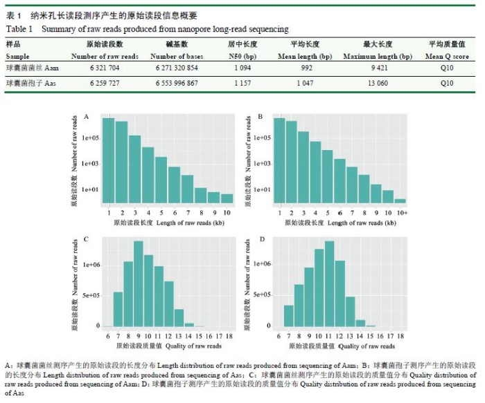 圖1球囊菌菌絲和孢子納米孔長讀段測序的原始讀段長度和質量值分布Fig.1Lengthandqualitydistributionofrawreadsgeneratedfromnanoporelong-readsequencingofA.apismyceliumandspore