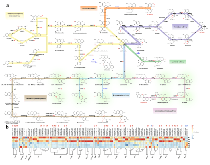 對(duì)合成原小檗堿型芐基異喹啉生物堿的相關(guān)基因進(jìn)行了挖掘,為后期利用合成生物學(xué)與植物代謝工程生產(chǎn)延胡索中具有鎮(zhèn)痛效果的痕量化合物奠定了基礎(chǔ)。