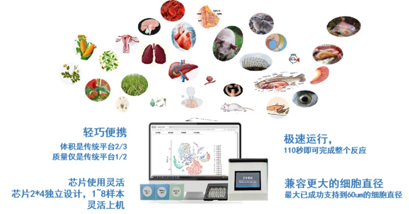目前百創(chuàng)智造自主研發(fā)的單細胞微液滴系統(tǒng)-BMKMANU DG1000,是基于微流控、油滴包裹和Barcode標記等技術來實現(xiàn)高通量的細胞捕獲,除了110s快速形成油包水(GEMs)結構外,還有配套的2×4的獨立芯片及配套試劑盒,能兼容60μm的細胞直徑。目前BMKMANU DG1000已經在上百例動植物樣本中得到實測效果驗證。