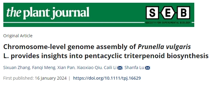 2024年1月16日,The Plant?Journal上線了一篇關(guān)于夏枯草基因組的研究論文,“Chromosome-level genome assembly of?Prunella vulgaris?L. provides insights into pentacyclic triterpenoid biosynthesis”,報(bào)道了組裝到染色體水平的夏枯草基因組,為進(jìn)一步闡明五環(huán)三萜的生物合成機(jī)制奠定了基礎(chǔ)。