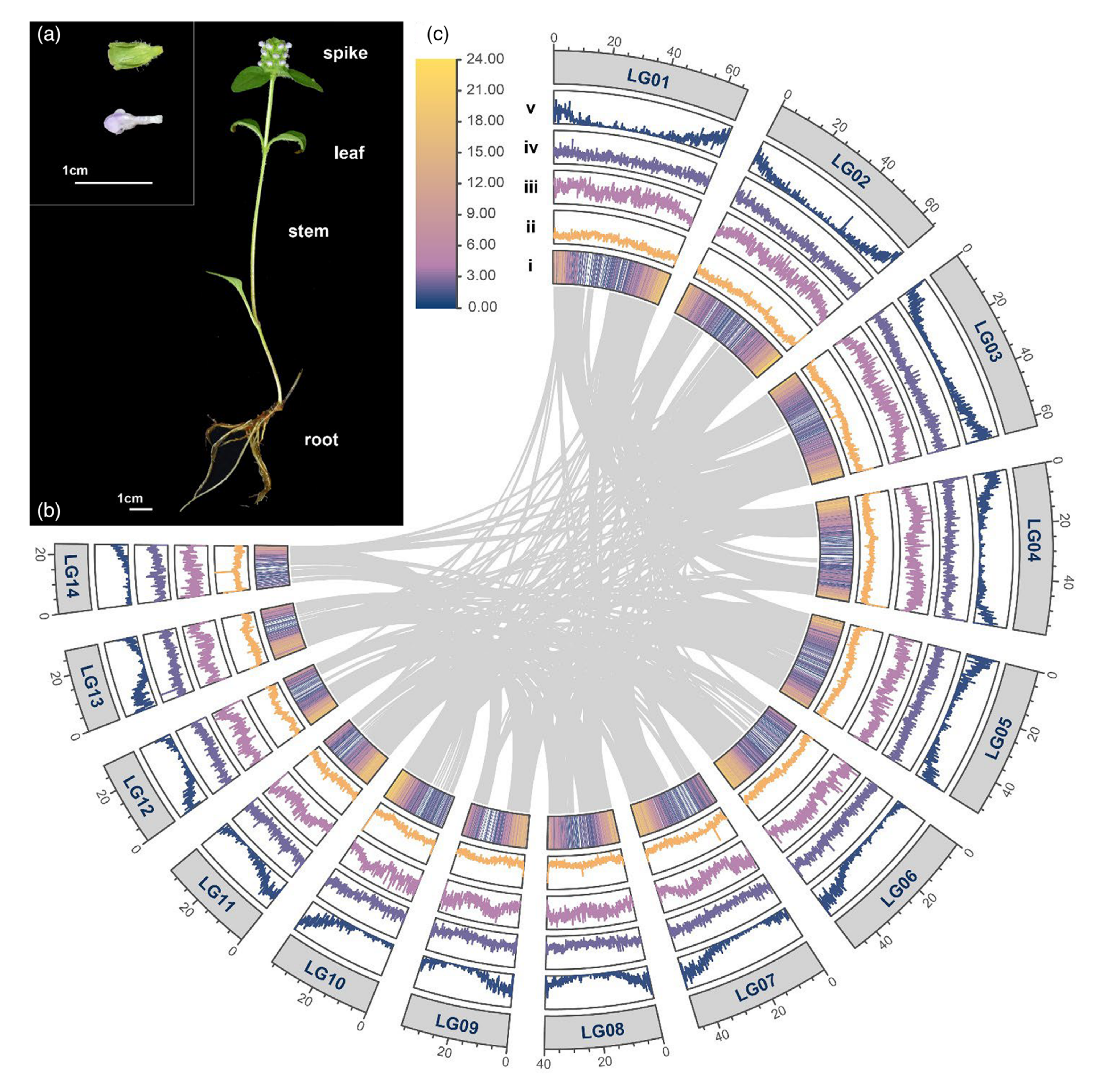 圖1-夏枯草的形態(tài)、基因組和基因組內(nèi)共線性概覽
