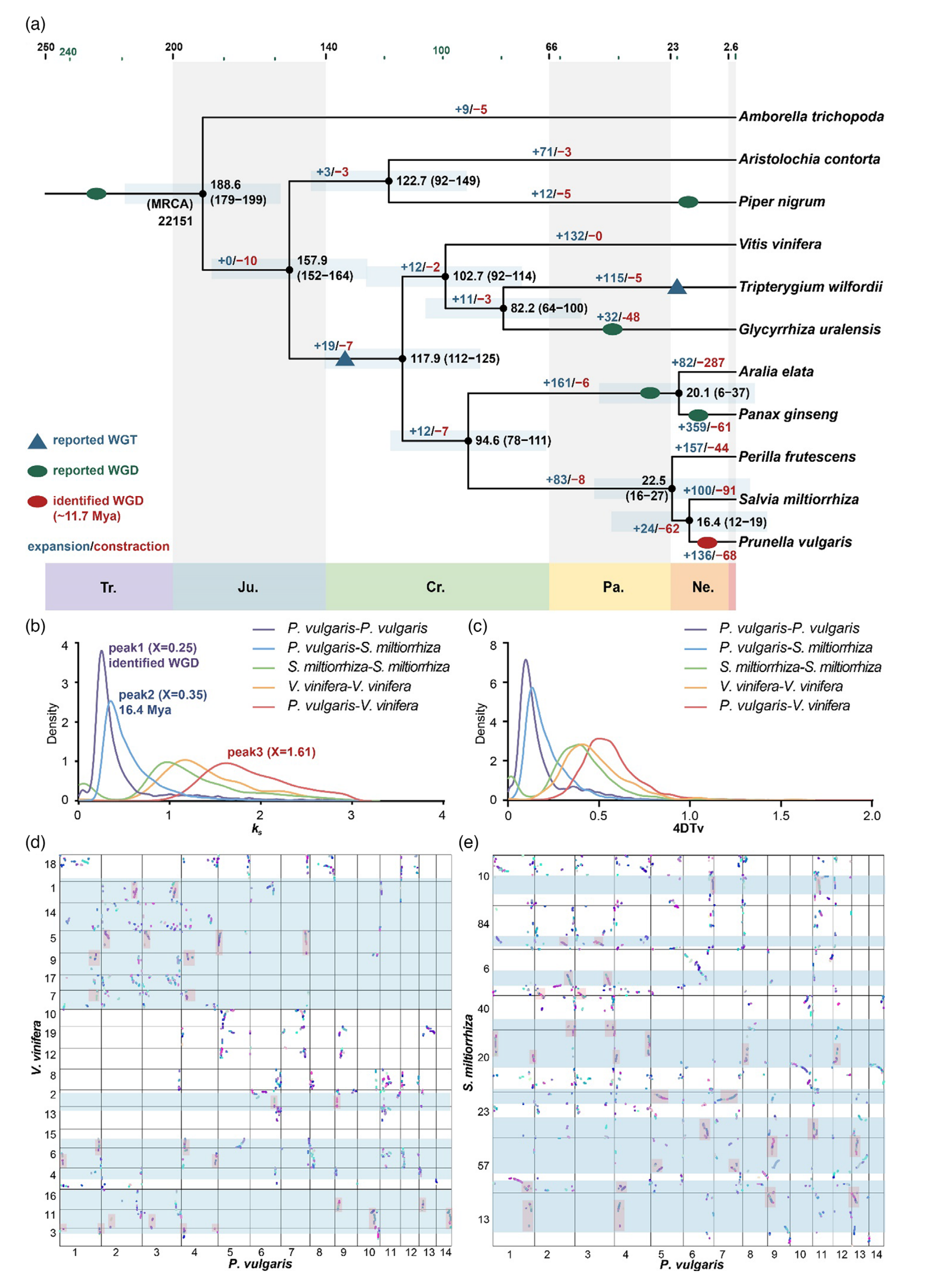 文章標(biāo)題:Chromosome-level genome assembly of?Prunella vulgaris?L. provides insights into pentacyclic triterpenoid biosynthesis