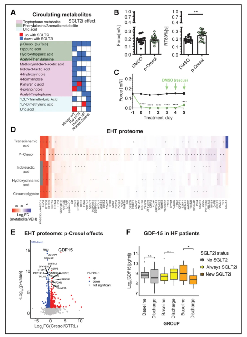 圖7-SGLT2i調(diào)節(jié)的尿毒癥毒素對(duì)甲酚對(duì)人體工程心臟組織的影響