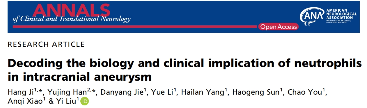 2024年2月,四川大學(xué)華西醫(yī)院在國(guó)際學(xué)術(shù)期刊ANNALS?of Clinical and Translational Neurology發(fā)表一項(xiàng)重要研究成果,題為:Decoding the biology and clinical implication of neutrophils in intracranial aneurysm。使用單細(xì)胞 RNA 測(cè)序?(scRNA-seq)、RNA-seq 和小鼠模型來剖析在破裂和未破裂的顱內(nèi)動(dòng)脈瘤中性粒細(xì)胞的功能和臨床意義。