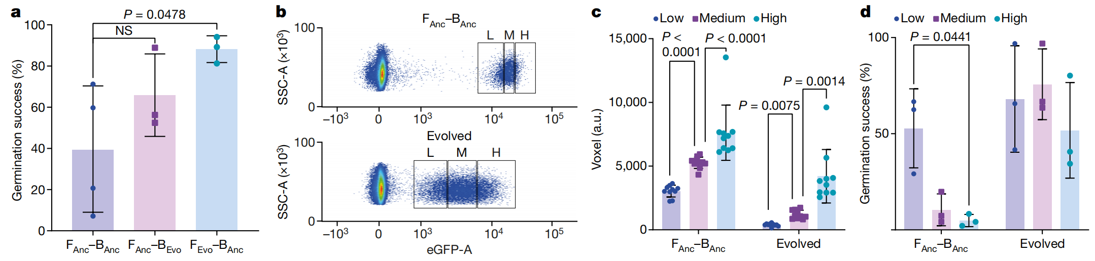 該研究將細(xì)菌 Mycetohabitans rhizoxinica?植入真菌?Rhizopus microsporus?中,發(fā)現(xiàn)這種細(xì)菌能夠在真菌細(xì)胞中繁殖并垂直傳遞給后代。通過適應(yīng)性實(shí)驗(yàn)室進(jìn)化實(shí)驗(yàn),研究人員發(fā)現(xiàn)這種人工誘導(dǎo)的內(nèi)共生關(guān)系可以通過正向選擇來提高其穩(wěn)定性和適應(yīng)性。進(jìn)化后的真菌產(chǎn)生了與天然宿主相關(guān)的代謝產(chǎn)物,證明了通過人工誘導(dǎo)的內(nèi)共生關(guān)系可以將代謝功能轉(zhuǎn)移到新的宿主中。