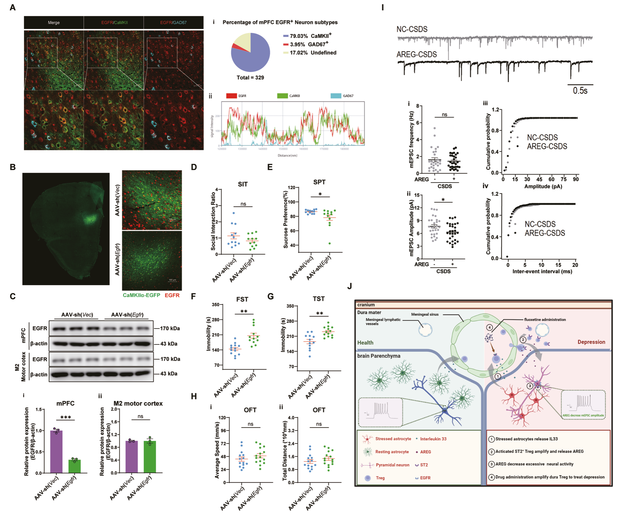圖8-通過(guò)激活mPFC錐體神經(jīng)元的EGFR信號(hào),硬腦膜Treg調(diào)控抑郁行為