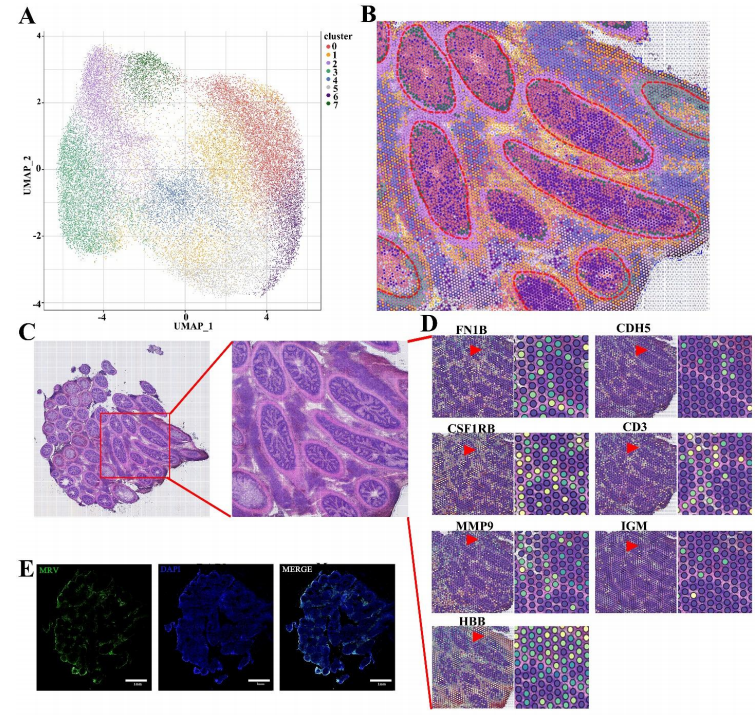 空間轉錄組:感染蛙虹彩病毒(MRV)的鱖魚的幽門盲囊組織