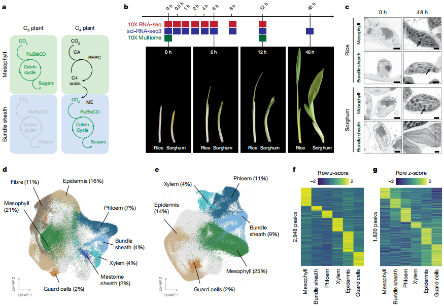 圖2-水稻和高粱幼苗去黃化過程中單細(xì)胞核的基因表達(dá)和染色質(zhì)可及性