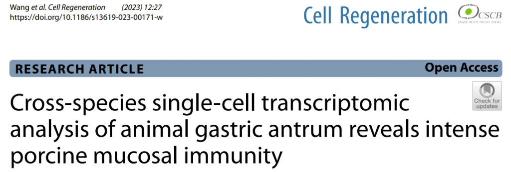 11. Wang X, et al. Cross-species single-cell transcriptomic analysis of animal gastric antrum reveals intense porcine mucosal immunity. Cell Regen. 2023 Aug 1;12(1):27.