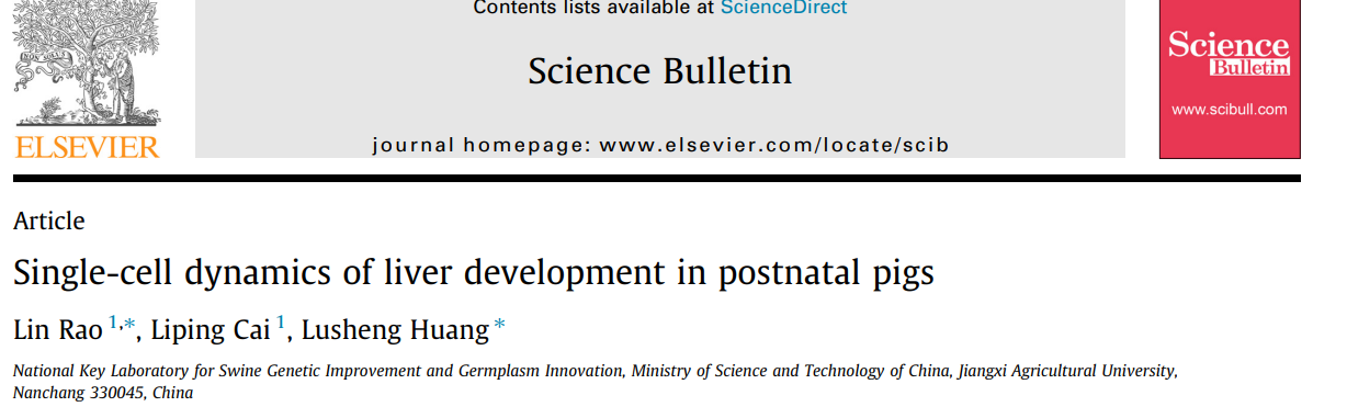 英文標(biāo)題:Single-cell dynamics of liver development in postnatal pigs