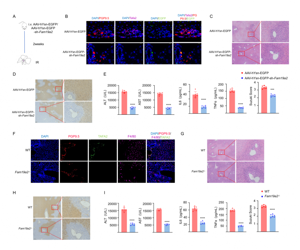 圖4-Fam19a2敲除或敲低,使得小鼠肝臟缺血再灌注損傷降低