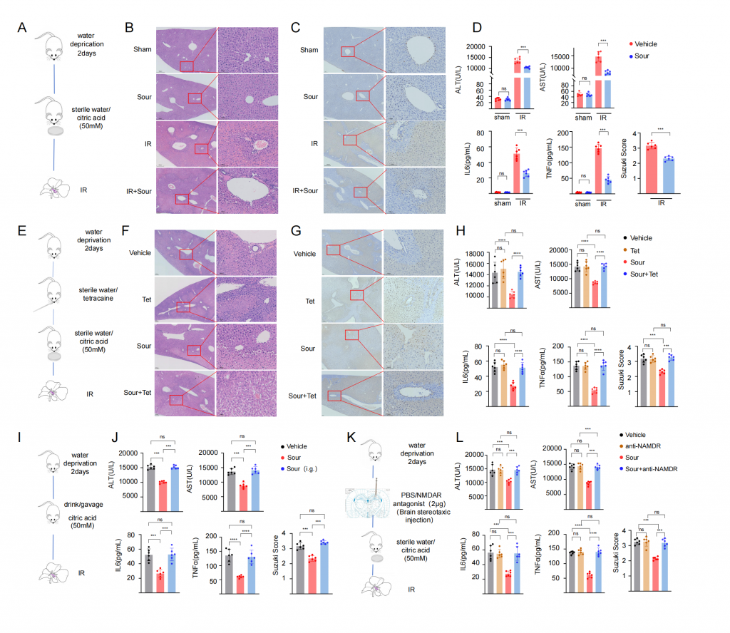 圖1-酸通過(guò)神經(jīng)減輕小鼠肝臟缺血再灌注損傷