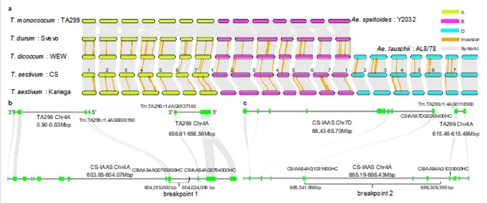 圖2. 二、四、六倍體小麥染色體重排與斷點結(jié)構(gòu)解析