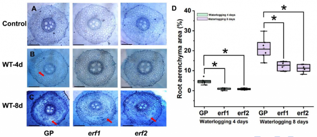 揚(yáng)州大學(xué)Rugen Xu團(tuán)隊(duì)在《Journal of Experimental Botany》雜志發(fā)表題為“Natural variation and CRISPR/Cas9 gene editing demonstrate the potential for a group VII ethylene response factor HvERF62 in regulating barley (Hordeum vulgare L.) waterlogging tolerance”的論文,揭示了大麥VII類乙烯反應(yīng)因子?HvERF62?通過調(diào)控氣孔形成、活性氧穩(wěn)態(tài)和碳水化合物積累,從而提高大麥耐漬澇能力。