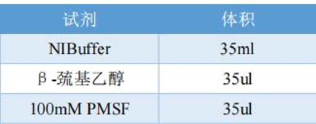 1)配制NIBuffer工作液 1 ,配制好后置于冰上放置