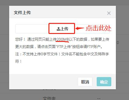 網(wǎng)頁只能上傳 200MB 以下的數(shù)據(jù),上傳更大的數(shù)據(jù)請點擊”FTP 上傳”。注:不支持上傳 0 字節(jié)文件!文件名不能包含中文及特殊字符!