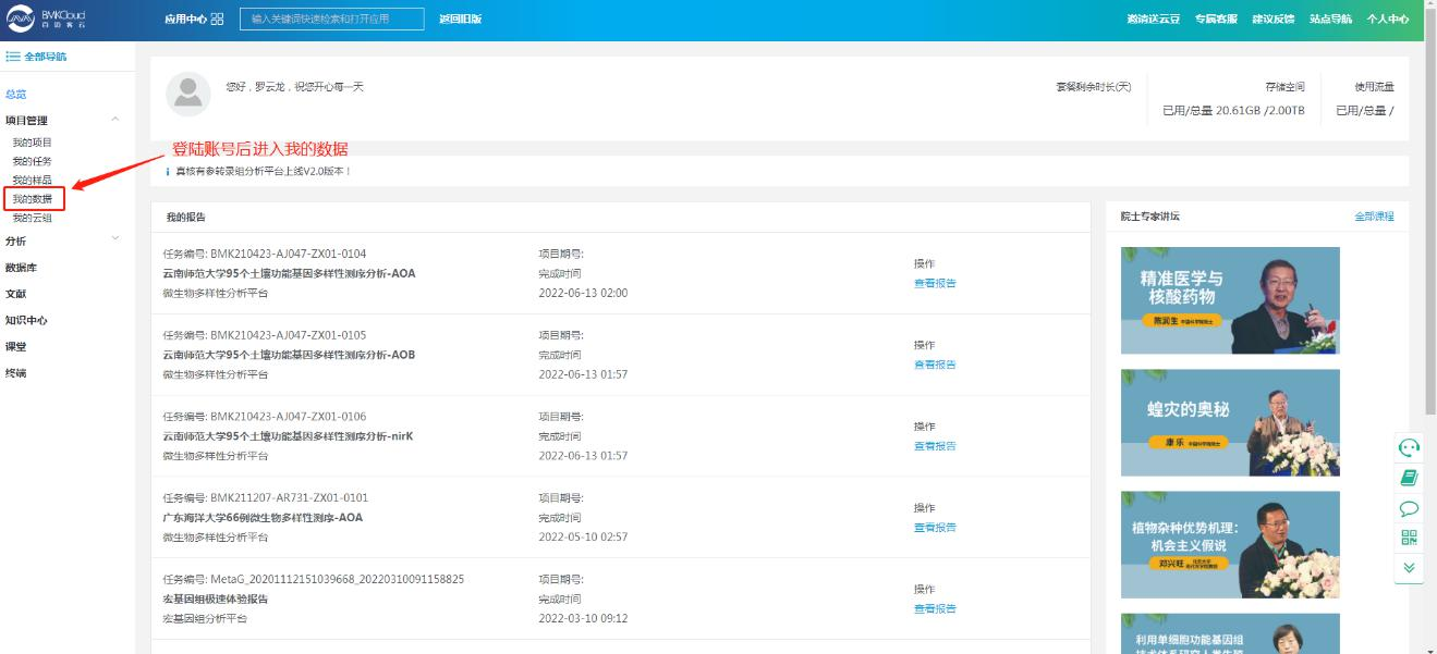 1、登陸賬號后,在主頁面查看項目管理,進(jìn)入“我的數(shù)據(jù)”