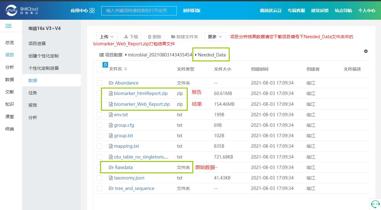 微生物基因組:MicroG_年月日編號數(shù)據(jù)下載:上述報告查找頁面 – 點擊左側(cè)數(shù)據(jù) – 進入相應(yīng)數(shù)據(jù)文件夾