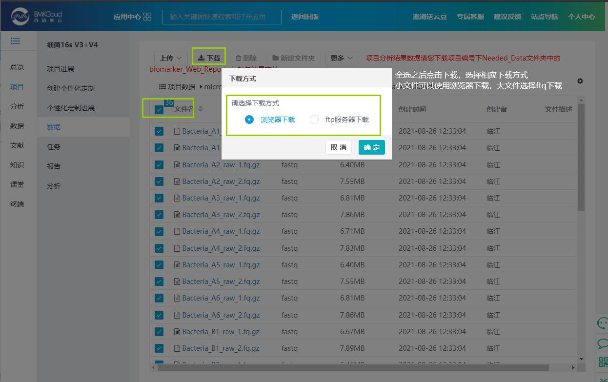 結(jié)果數(shù)據(jù)較小的直接使用瀏覽器下載,較大的需要使用 ftp 下載,具體的 ftp下載指導在后續(xù)詳細介紹。