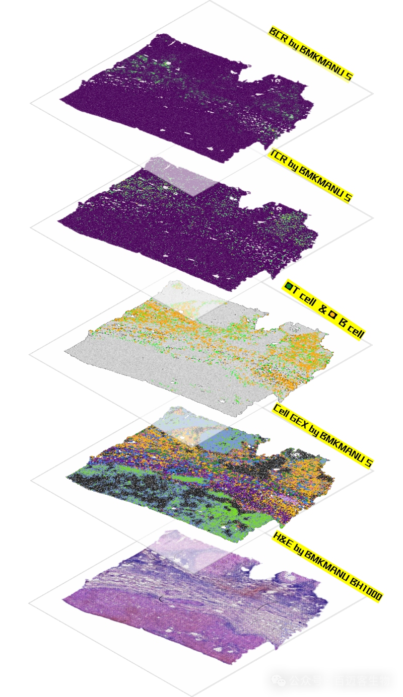 2024年12月,百邁客生物智能制造以廣受市場好評的亞細(xì)胞級S系列空間轉(zhuǎn)錄組芯片為依托,開發(fā)出了在原片上可同時捕獲3’端轉(zhuǎn)錄組信息以及全長B細(xì)胞受體(BCR)和T細(xì)胞受體(TCR)序列的空間T/BCR測序技術(shù)產(chǎn)品—BMKMANU?S3000-VDJ?,將填補這一技術(shù)產(chǎn)品的缺口。