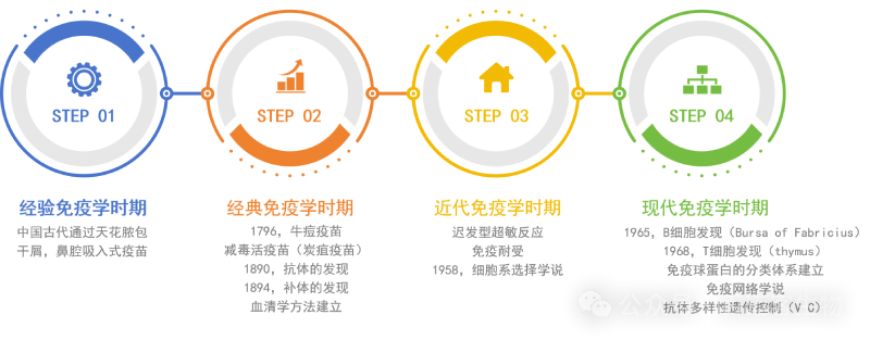 這是最早關(guān)于人類免疫學(xué)應(yīng)用的記錄。公元前?400?年,中國可能已有人痘苗接種預(yù)防天花的方法,到?16?世紀(jì)明朝隆慶年間,人痘接種法得到重大改進并廣泛應(yīng)用,17?世紀(jì)傳入俄國、朝鮮、日本、土耳其和英國等國家,至18世紀(jì)末結(jié)束經(jīng)驗免疫學(xué)時期,隨后免疫學(xué)又經(jīng)歷了經(jīng)典免疫學(xué)時期,近代免疫學(xué)時期,直到1965年/1968年?B細(xì)胞/T細(xì)胞的發(fā)現(xiàn)開啟了現(xiàn)代免疫學(xué)時期。