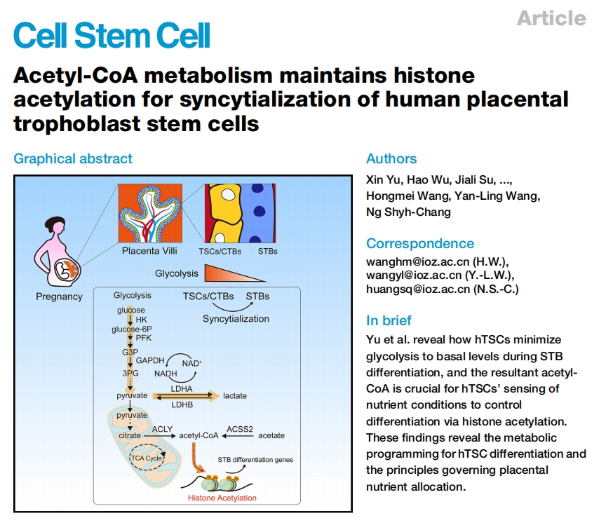 文章標題:Acetyl-CoA metabolism maintains histone acetylation for syncytialization of human placental trophoblast stem cells